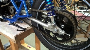 We’ve made lots of progress in the past weeks… the engine is in, the carbs are on with all the cables (lots of cables!), the wiring harness is in and almost complete, The chrome handlebars have been swapped out for some matte black superbike bars, the chain/sprockets are on and we are ready to install the mufflers. It’s getting close! Should be a really fun little bike.